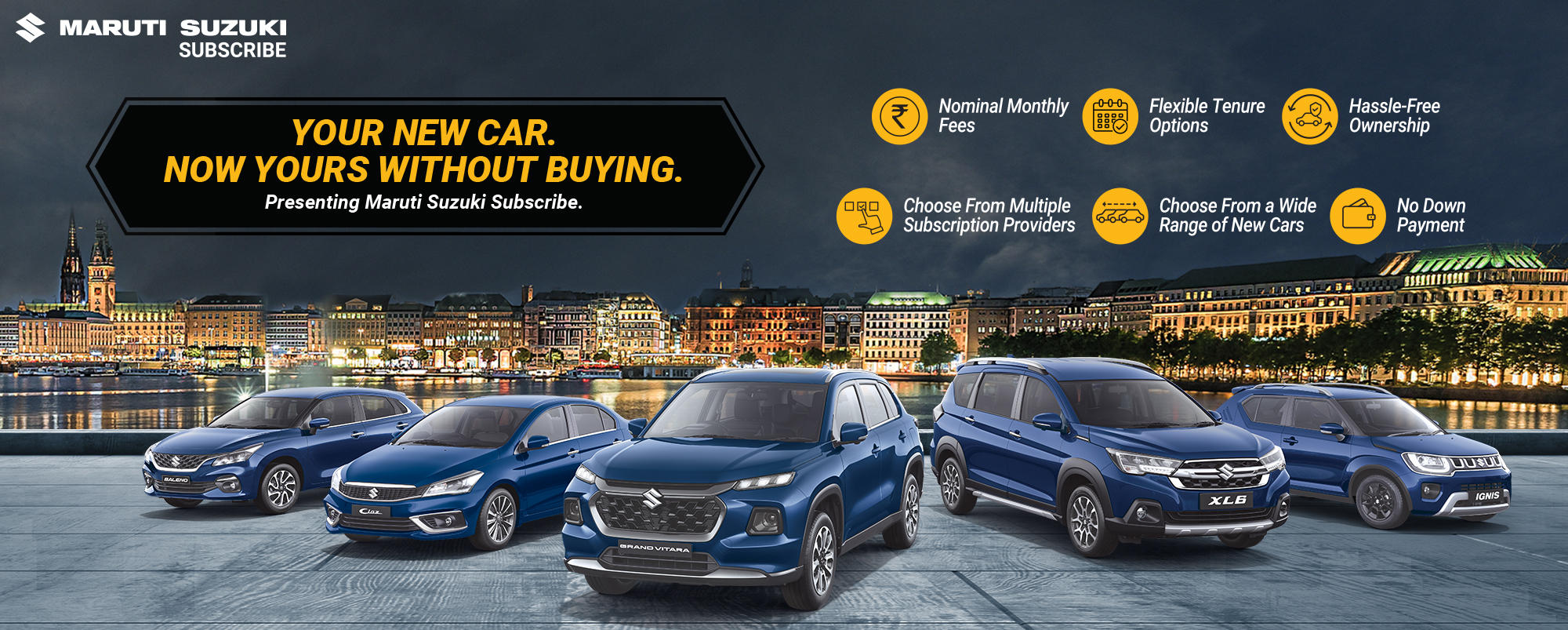 Maruti Suzuki Subscribe enables all customers to enjoy driving their preferred Maruti Suzuki cars without having to deal with all the financial responsibilities that come with owning a car.All you need to do is opt for a monthly subscription plan at a fixed monthly fee, which includes the routine maintenance and insurance costs, and choose a flexible tenure. At Indus Motors in, , Cochin, all Hatchback, Sedan, SUV, the MUV models line-up includes Baleno, Invicto, EVitara, Jimny, Ciaz, Ignis, Fronx, Grand Vitara, XL6. Here, you will enjoy Maruti Suzuki Subscribe benefits such as: